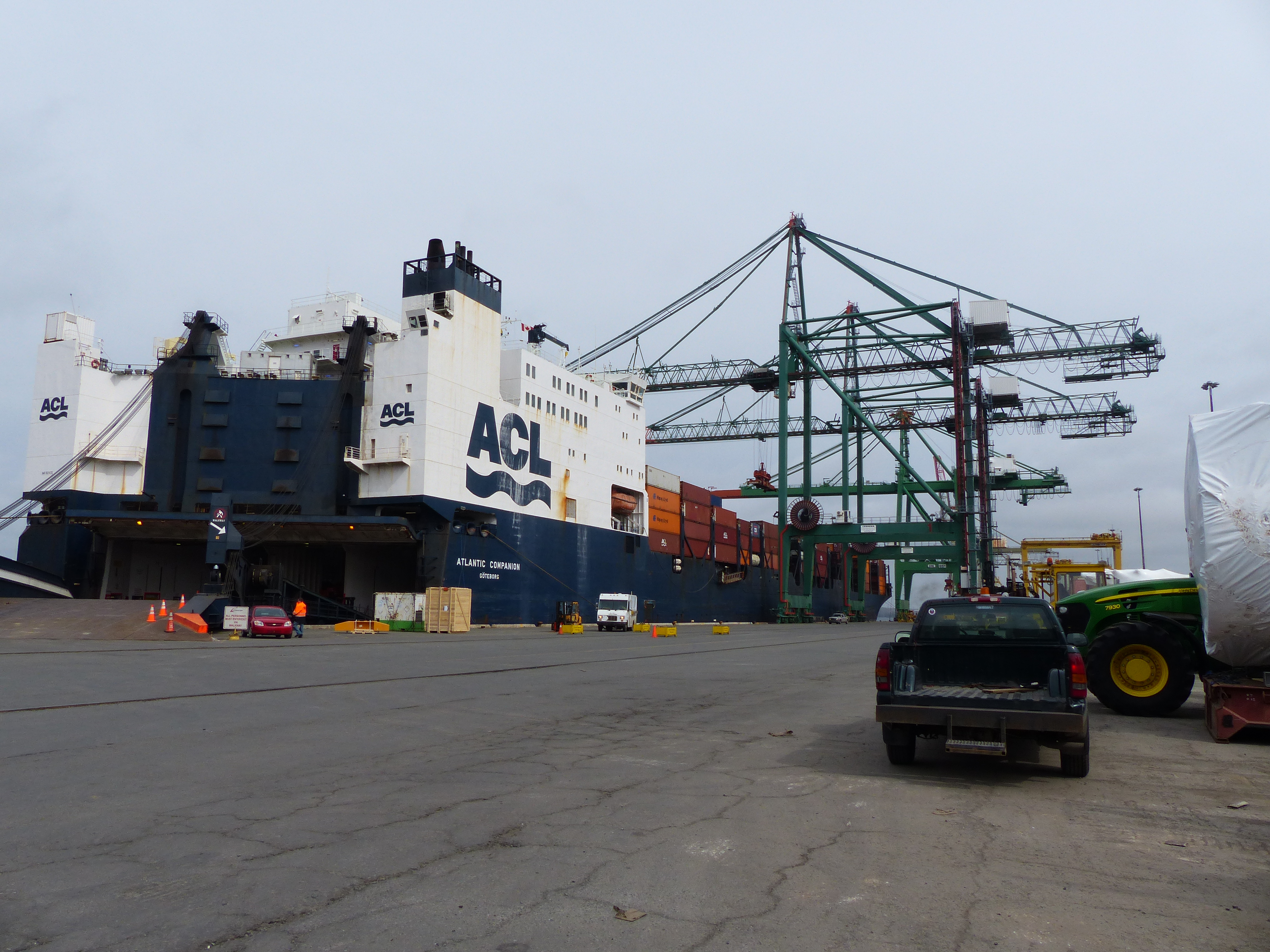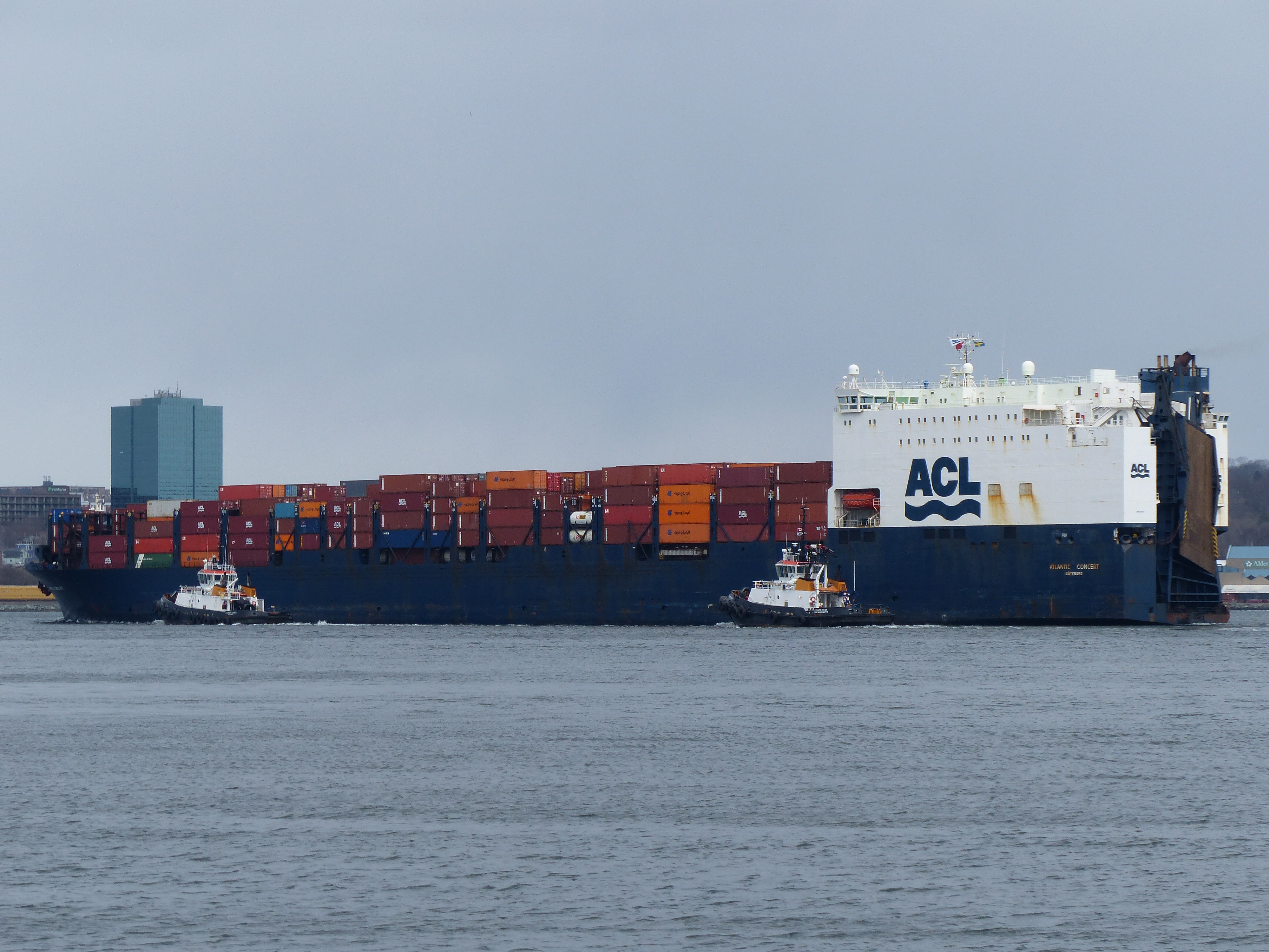 Wie angekündigt traf „unser“ Frachtschiff, die Atlantic Concert, mit einem Tag Verspätung am Mittwoch 3.4. in Halifax ein. Dies wollten wir uns natürlich nicht entgehen lassen. Dank Internet konnten wir die Position des Schiffes genau verfolgen. So konnten wir rechtzeitig zum Hafen spazieren und die Atlantic Concert auf den letzten Metern beobachten. Die schiere Masse eines solchen Frachtschiffes ist schon sehr beeindruckend.