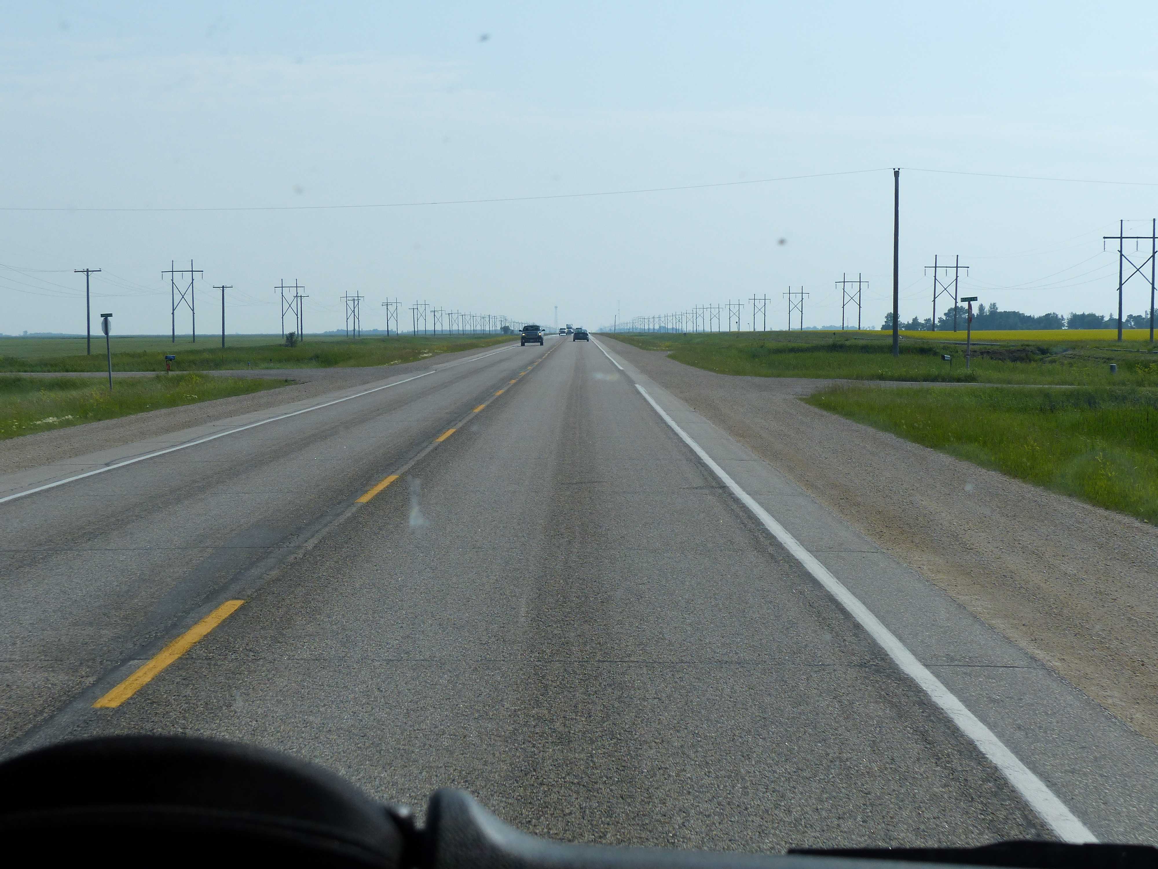Die Kanadier haben uns immer wieder vorgewarnt, wir sollten für die lange und öde Fahrt durch die Prärie ja genug Musik dabei haben, um wenigstens etwas Unterhaltung zu haben. Doch langweilig wurde es uns nie. Die Weite strahlt eine grosse Ruhe aus. Der Blick zum Horizont vermittelt ein Gefühl von Freiheit und Unendlichkeit. Es ist nicht schwer sich vorzustellen, wie einst Indianer auf ihren Pferden durch die endlose Prärie galoppiert sind.