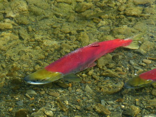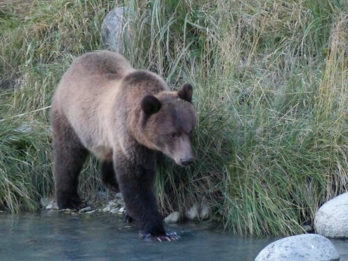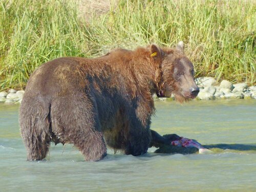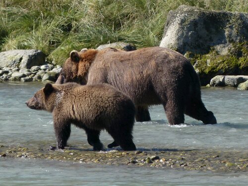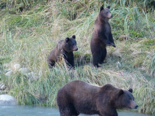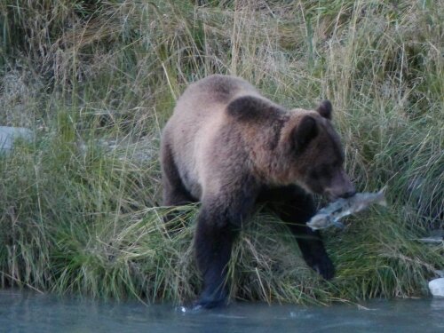 Wo Lachse sind, sind auch Bären. Für Bären sind die Lachse eine wichtige Futterquelle, um sich genügend Fett für den langen Winter anzufressen. Die lachsreichen Flüsse sind auch der Grund, warum die Grizzlybären in den Küstengebieten so gross werden können. Die Inland Grizzlies sind wesentlich kleiner, weil sie nicht derart einfachen Zugang zu solch proteinreicher Nahrung haben und sich viel mehr von Beeren, etc. ernähren müssen.