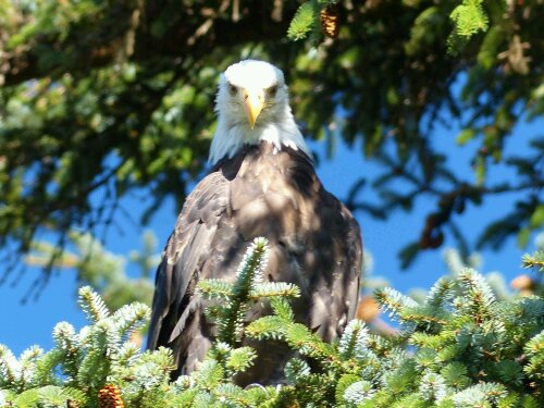 Ein Weisskopfadler beobachtet genau, was wir machen