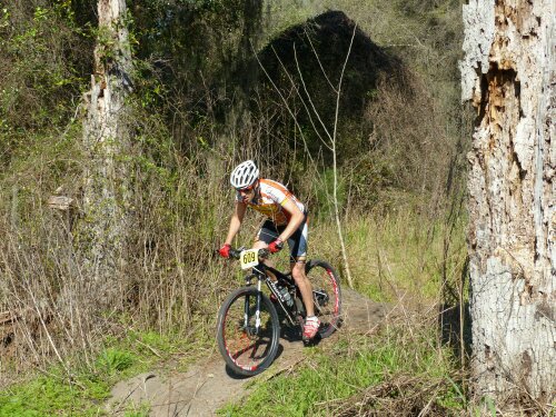 Zum Glück hatte ich am Vorabend die Strecke bereits besichtigt. So wusste ich, dass die ganze Runde ein einziger schmaler Singletrail war. Auf den ganzen 7.3km war es lediglich an 2-3 Stellen möglich zu überholen. Für mich war deshalb klar: ein richtiger Kaltstart musste her. Vollgas in den Singletrail war meine Devise. Zu meinem Erstaunen schaffte ich es tatsächlich als Dritter auf den Trail. Dafür fing bald danach das Leiden an – mein Körper befand sich wohl richtiggehend in einem Schockzustand. Ist ja eigentlich auch kein Wunder. Mit der Zeit ging’s jedoch immer besser. Sehr motivierend war die Strecke. Der erste Teil war sehr flach und schnell mit vielen Kurven, während die zweite Streckenhälfte ein stetiges Auf und Ab mit zahlreichen zum Teil sehr technischen Elementen war. In der zweiten Runde hatte ich noch einen Sturz, der aber glücklicherweise glimpflich ausging. Schliesslich reichte es mir zum 6. Rang in meiner Kategorie, womit ich ganz zufrieden bin.